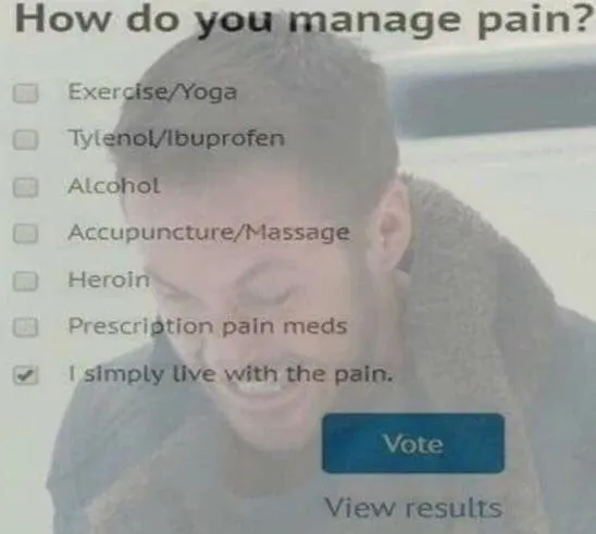 And now here I am like, idk, several years later, and I'm still scared of my own body. I can't work out as much as I used to-- or I *feel* like I can't, which is just as bad. I'm lucky to get through a week without something weird or painful going on that scares me again.